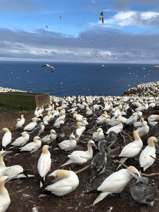 Environment and Climate Change Canada collects eggs from the Northern gannet colony every five years since 1969 to monitor contaminant concentrations and conducts a population census since 1979. Since the 2000s, many research projects have been developed by several groups. In the last decade, annual monitoring of breeding success and diet was started by the University of Québec in Rimouski. Bonaventure Island became a SEATRACK location in 2023 with GLS and GPS loggers being deployed on Northern gannets.
